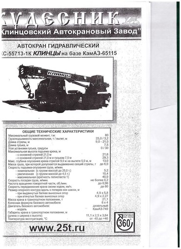 ходу КС-55713-1К, 25 т, шасси 65115 (ГОСТ 22827-85,