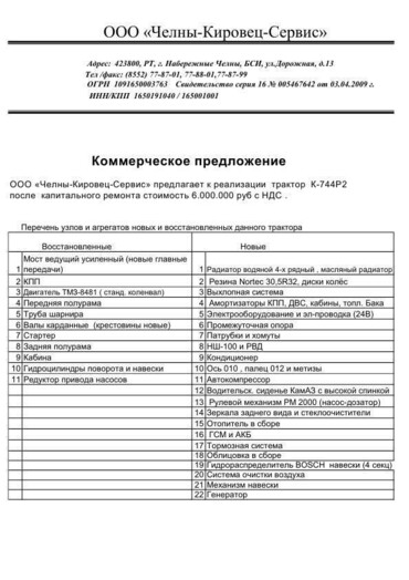 Заявка на покупку трактора